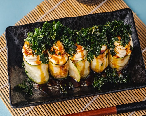 Cucumber and Vegan (5pc) Cheese w/ Crispy Kale Gunkan$14×