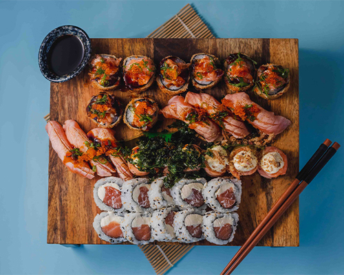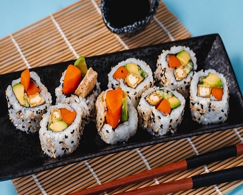 Vegan Lovers (39 pcs) Combo$5410x Vegan Hot Roll, 4x Hosomakis Avo, 4x Hosomaki Cucumber, 8x Vegan Uramaki, 5x Gunkan Vegan, 8x Mushroom and Vegan cheese Uramaki