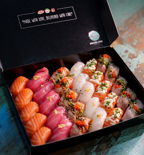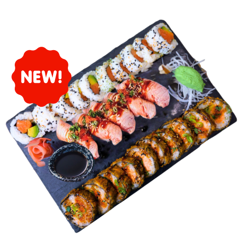 Salmon Lovers (30 pcs) Combo$658x Salmon & Cream Cheese Uramaki, 3x Gunkan Salmon & Crispy Kale, 3x Gunkan Salmon & Crispy Onion, 6x Nigiri Salmon Aburi, 10x Salmon Hot Roll SpecialSashimi Lovers (21 pc)$477 pcs sashimi Salmon , 7 pcs sashimi Tuna , 7 pcs sashimi White FishRainbow Combo (30 pc)$658 pcs sashimi ( 2x fresh salmon, 2x fresh tuna, 2x fresh White fish, 2 salmon Aburi), 8 pcs Volcano Uramaki, 8 pcs Gunkan (Salmon and crispy kale, Salmon and crispy onion, Salmon Joe, Tuna and crispy kale), 6 pcs Nigiri (Salmon, Tuna and White fish)