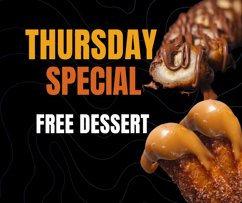 Thursday SpecialFREE dessert for orders above $45. (Select the items for your order first, then come back here to choose your free dessert).