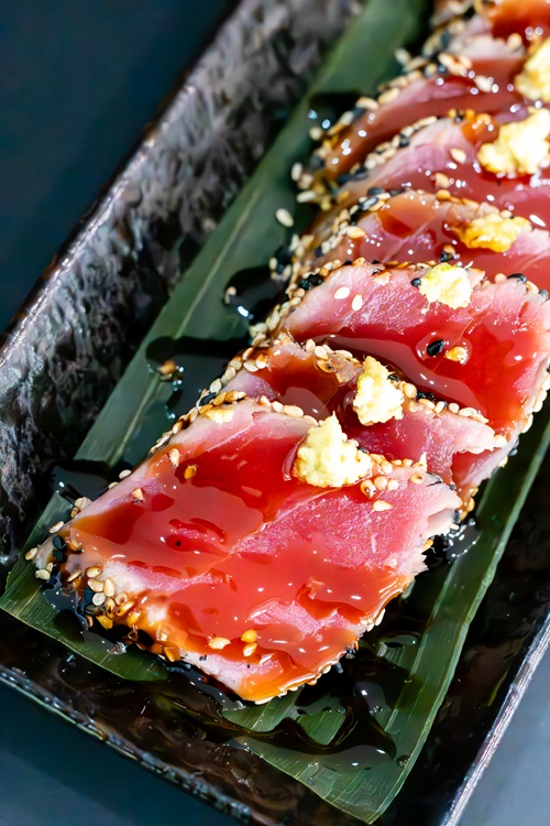 Tuna Tataki$18.50110 grams of premium sealed ruby tuna loin, coated in sesame seeds, topped with a drizzle of teriyaki and pinched ginger and lemon zestOut of stock